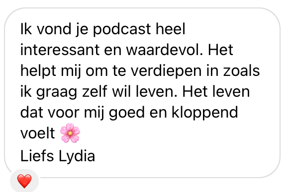 Ik vertel je hoe ik op 18-jarige leeftijd heb geleerd om naar de wijsheid van mijn hart te luisteren, maar mezelf daarna helaas flink ben kwijtgeraakt. Hoe ik tien jaar later keuzes heb gemaakt gebaseerd op een onverklaarbaar gevoel waardoor ik mezelf en mijn eigen pad heb teruggevonden. Ik neem je mee in de twee belangrijkste momenten in mijn leven die mij hebben geleerd om op mijn innerlijke wijsheid te vertrouwen, mijn hart te volgen en mijn purpose te leven. Van documentaires maken in Zuid-Afrika tot mijn droom leven in India (het land van het hart) – je hoort het in deze aflevering.